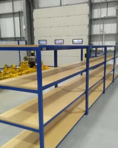 Mobile heavy duty shelves can be useful for large workspaces that need to be re-configured quickly to suit the job at hand.